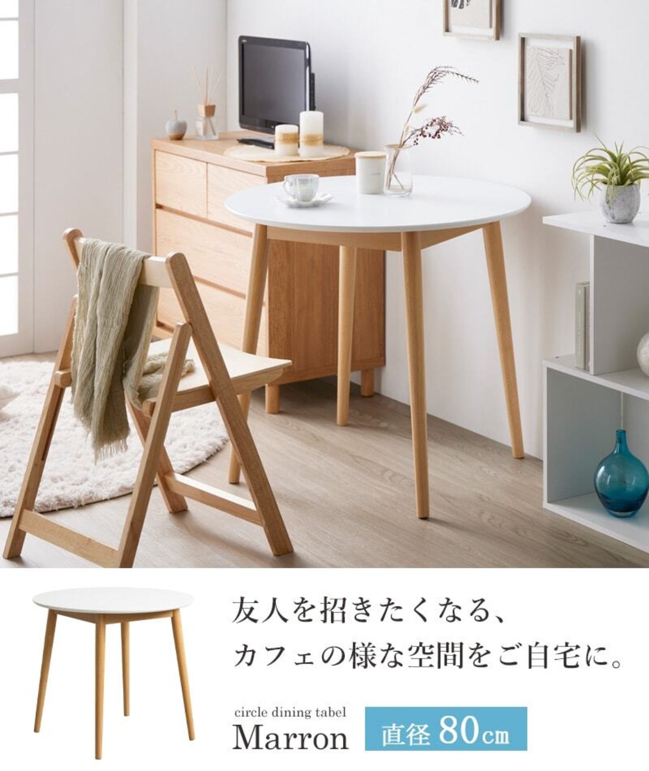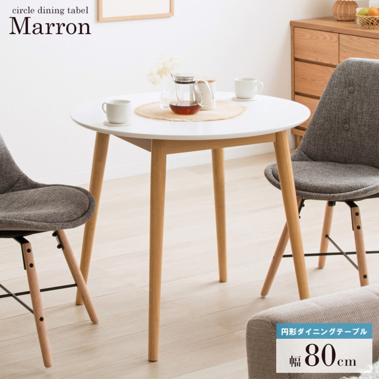 北欧テイストが魅力のコンパクトテーブル・マロン。清潔感あふれるツートンカラーで、一人暮らしやカフェ風インテリアにぴったり。