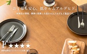 天然木ラバーウッドを贅沢に使用したダイニングシリーズ「スイーツ」。美しい木目と優しい手触りで、特別な食卓を演出します。低ホルムアルデヒド仕様で、安全に長く使える、安心の一台です。
