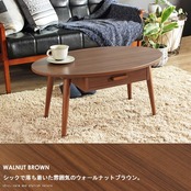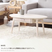引き出し付きの木製ローテーブル「クライス」は、可愛い楕円形フォルムで温かみのある木の質感を演出。安全面にも配慮されており、小さなお子様がいる家庭でも安心です。