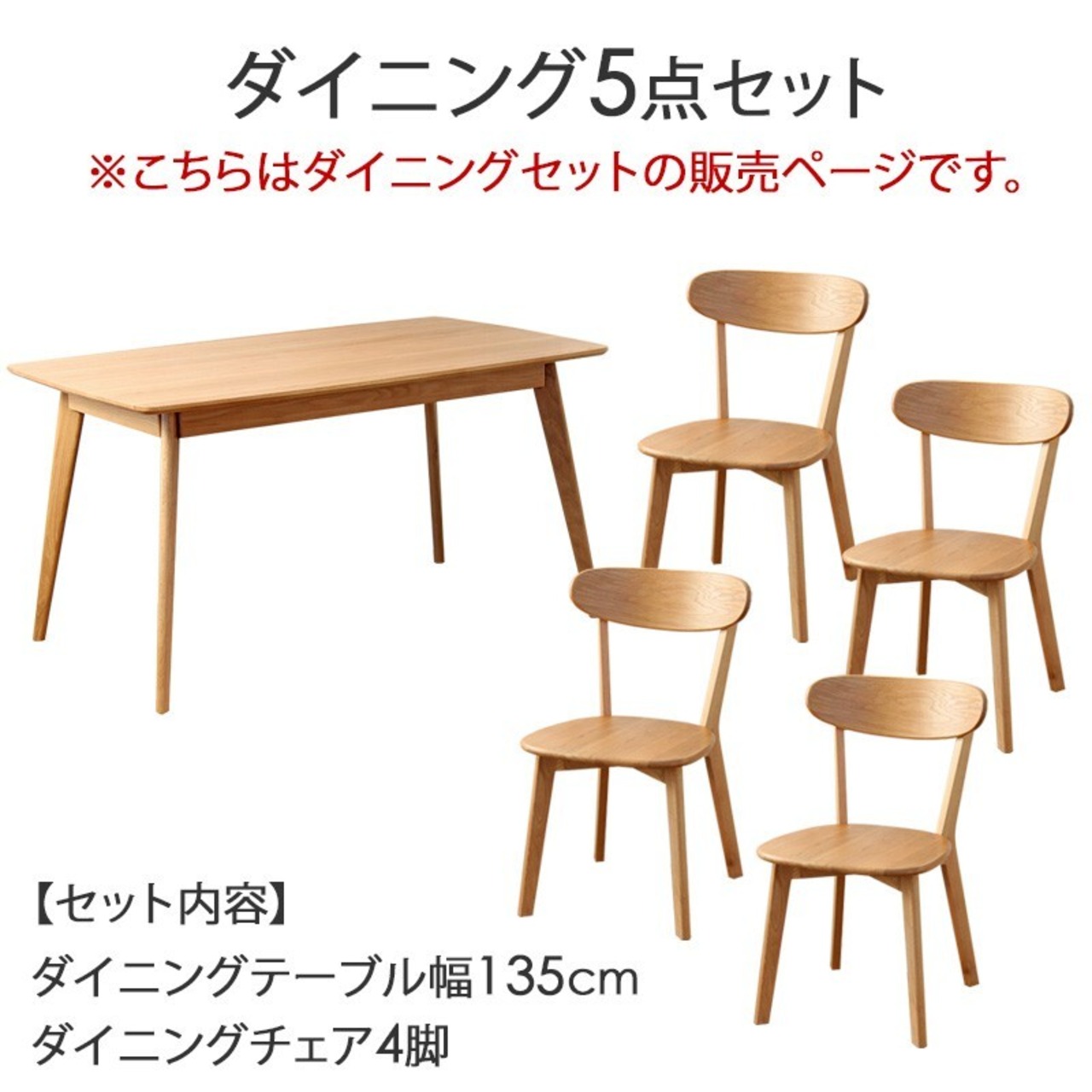 仕様 セット内容:ダイニングテーブル幅135cm×1台、ダイニングチェア×4脚