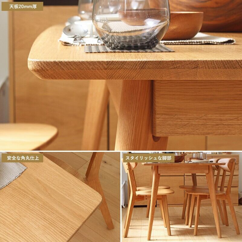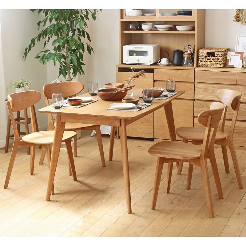シンプルで飽きのこないデザインと、使い込むほどに風合いが深まる無垢材の魅力。 ご家族や大切な人と長く過ごせる温かなダイニング家具セットです。