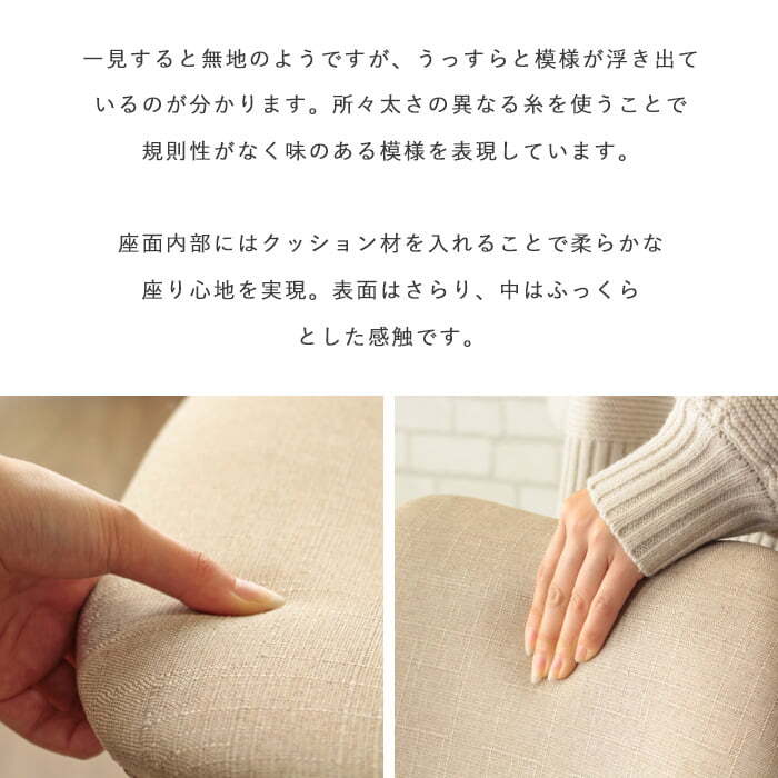 張地はさらっとした肌触りのファブリック生地で、熱がこもりやすい長時間のデスクワークや、冬の寒い朝もヒヤッとしないなど、オールシーズン快適です。