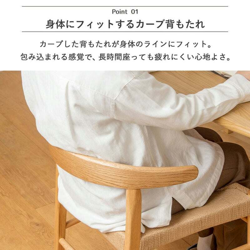 天然木のフレームと美しいペーパーコード座面が印象的な、北欧テイストのダイニングチェア。