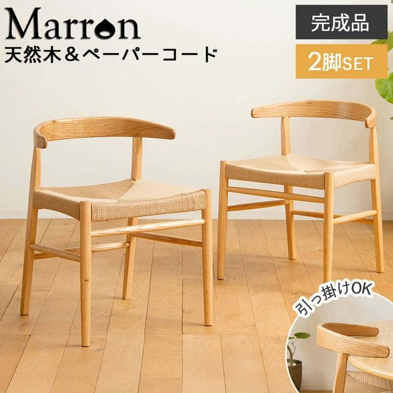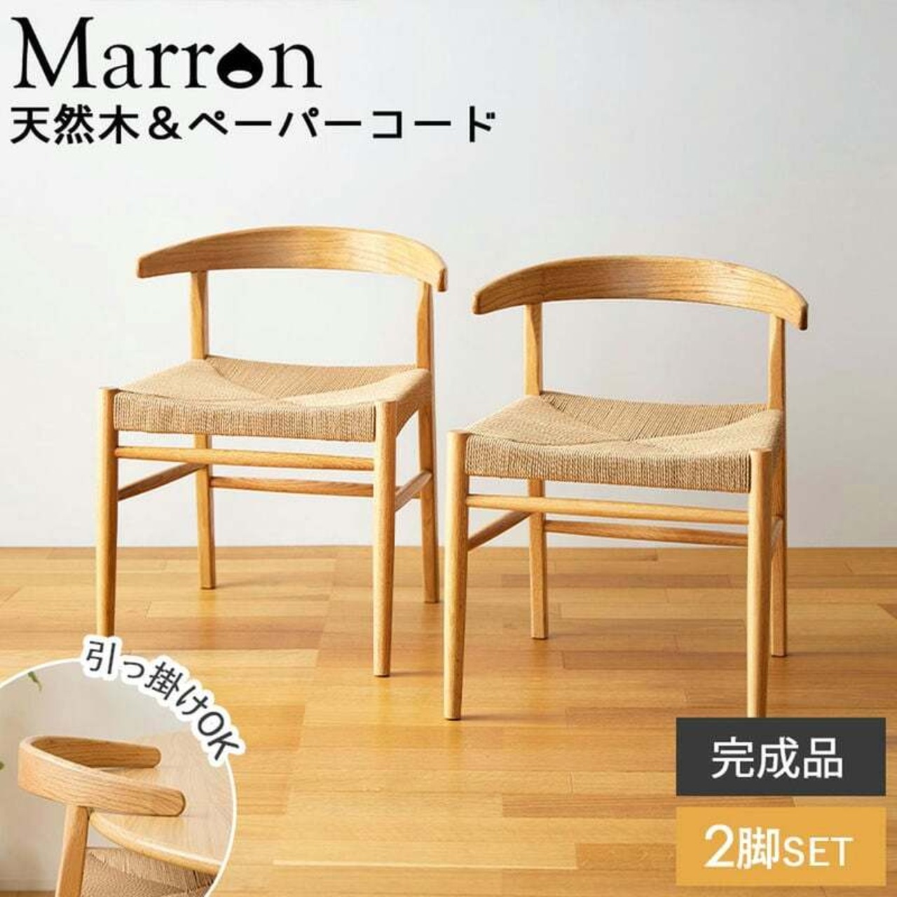 ペーパーコードチェア 2脚セット 天然木フレーム 和モダンチェア 手編み座面 通気性チェア 快適な座り心地 北欧インテリア