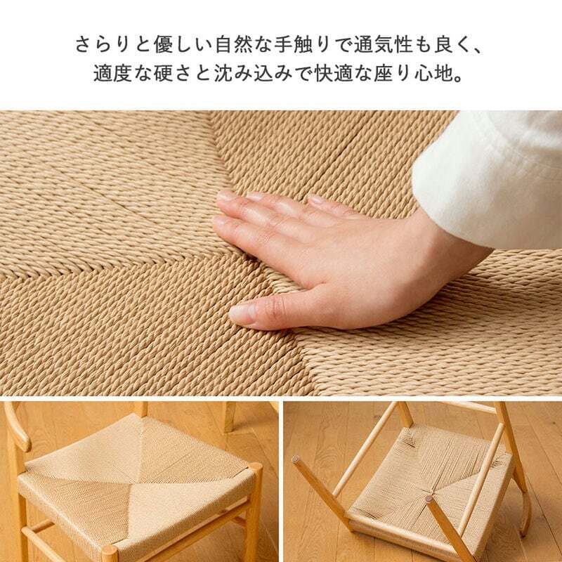 ナチュラルでやさしい色合いと、直線を基調としたシンプルなデザインが、空間に上質な温もりを添えます。座面には、職人の手作業で丁寧に編み込まれたペーパーコードを使用。