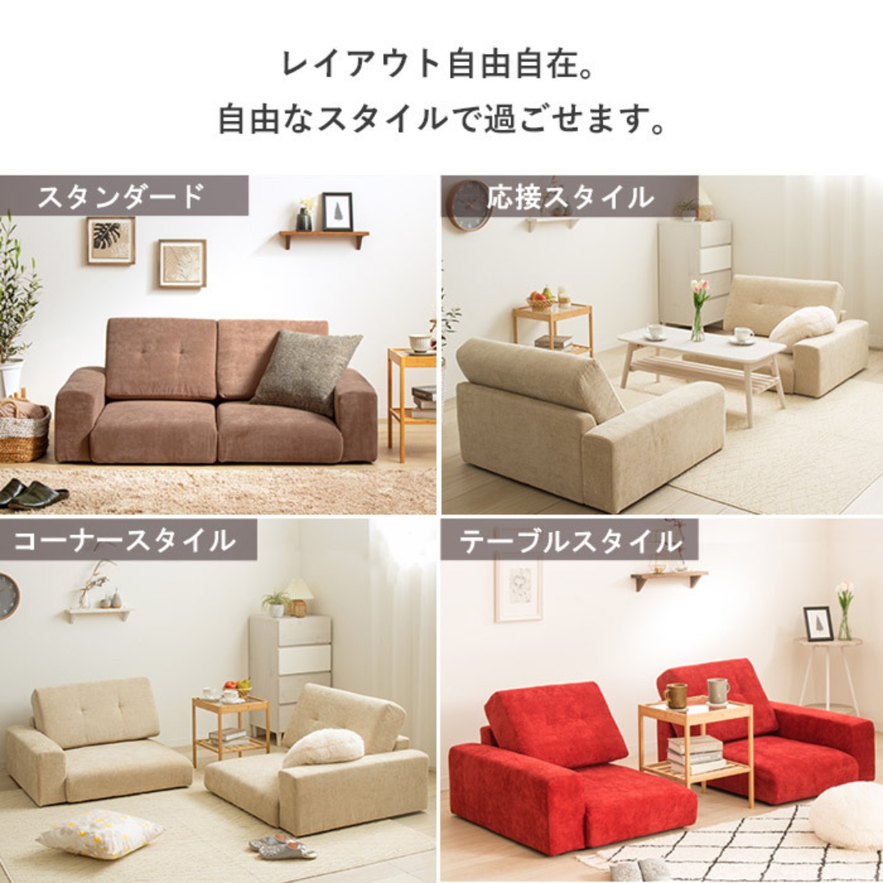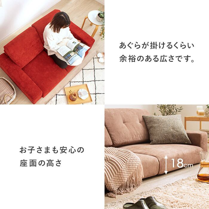 お部屋に合わせやすいベーシックなフォルムに加え、豊富なカラーバリエーションをご用意しています。 床に近い暮らしを実現するため、足を伸ばしてゆったりくつろぎやすく、小さなお子様やペットのいるご家庭にも最適です。