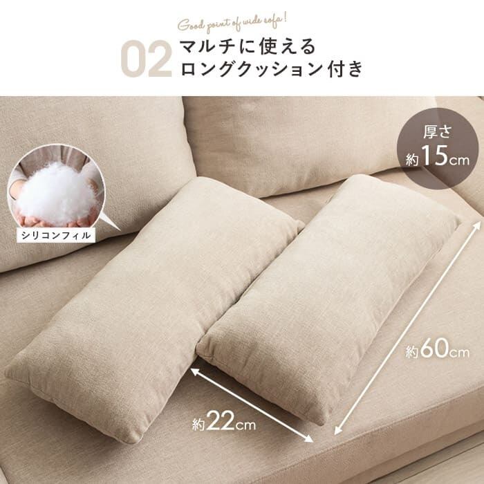 枕にしたり肘置きにも使えるロングクッション2個付きです。