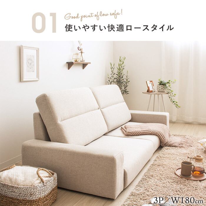 高さを抑えた サイズ感でお部屋が広く明るく感じられる、脚なしのロータイプソファ。