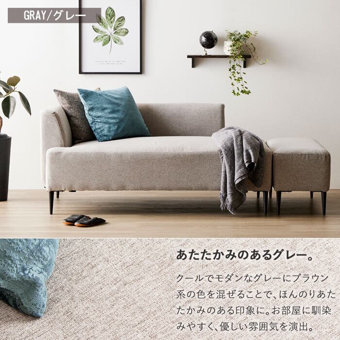 ワンアームソファと相性の良いオットマンがセットになって、自由にレイアウトを変えて自分だけのくつろぎの形を実現。