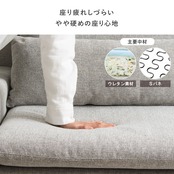 家族みんなが集まってくつろげる大きめサイズで、奥行が深いのでソファベッドの代わりにもなります。腰当てクッションが付いており、膝上に置いたり枕にしたりと便利にお使いいただけます。