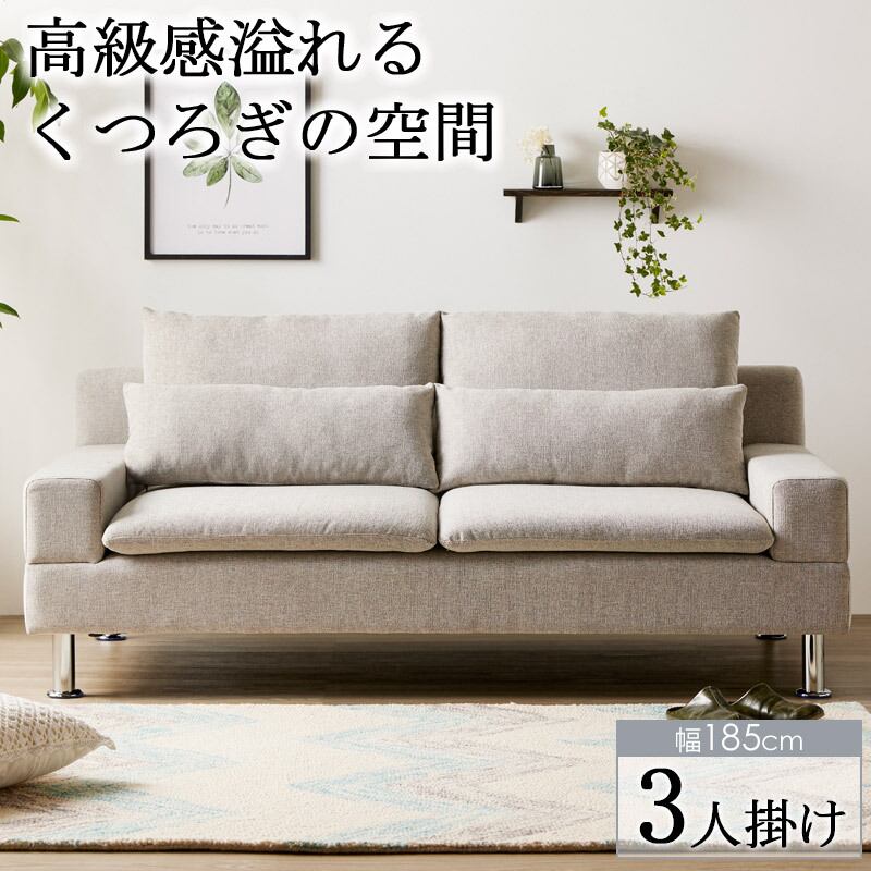 ソファー 3人掛け 北欧 3人 幅185cm ソファ ワイド インテリア 座面 広い おしゃれ グレー ごろ寝 クッション お昼寝 ソファ