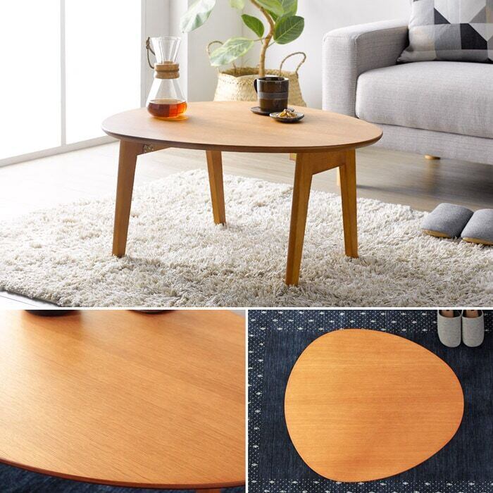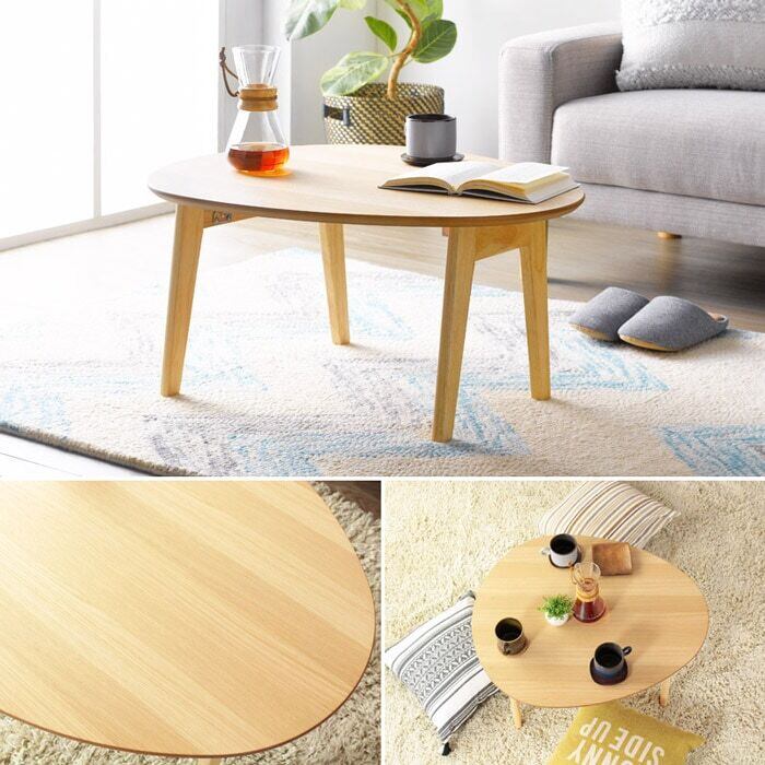 天然木の風合いを生かした、かわいいおにぎり型のちゃぶ台風ローテーブル