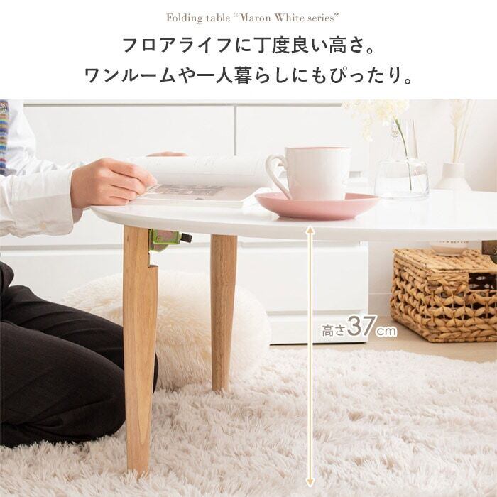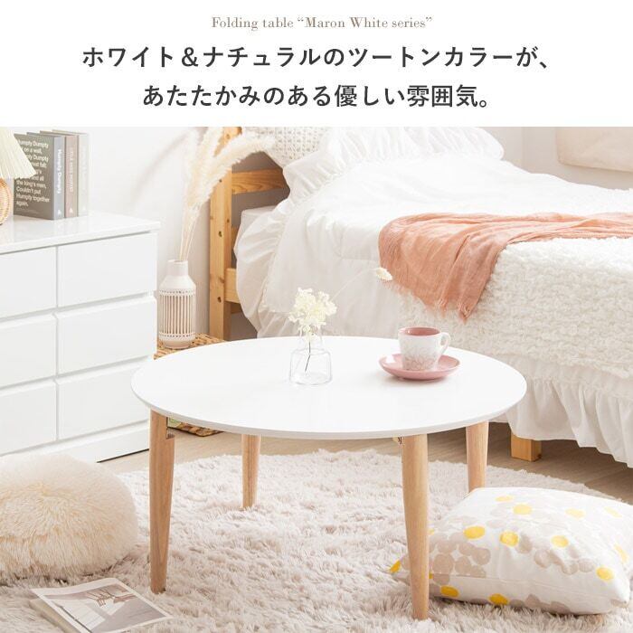 「マロン」シリーズから、すっきりした印象のホワイトカラーの円形テーブル(直径75cm)が登場しました。