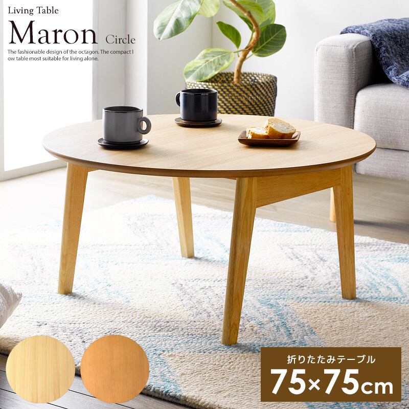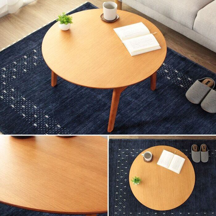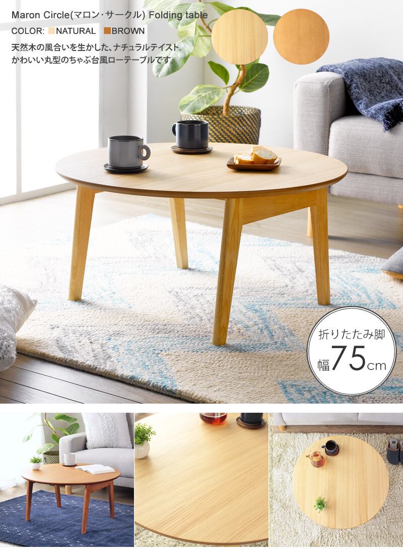 天然木の風合いを生かした、かわいい丸型のちゃぶ台風ローテーブル