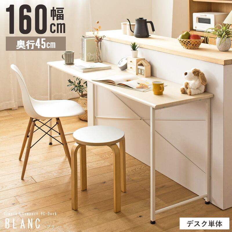 特に幅160cmのタイプは、広い作業スペースを確保でき、パソコンや周辺機器、小物をゆったりと配置できます。