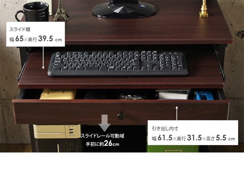 パソコンデスク 家具 デスク PCデスク 書斎机 ワークデスク 引き出し 引出し 棚付き キャスター付き 省スペース 75cm幅