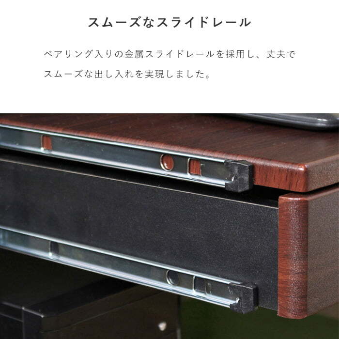 大型液晶モニタの設置にも対応した、ワイドな75cm幅の天板を使用したPCデスク