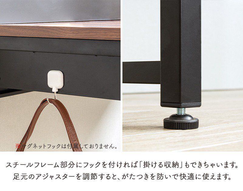 デザイン性と機能性を両立させたこのデスクは、丈夫なスチールフレームに粉体塗装仕上げを施しており、サビや汚れに強く、長く美しい状態でお使いいただけます。