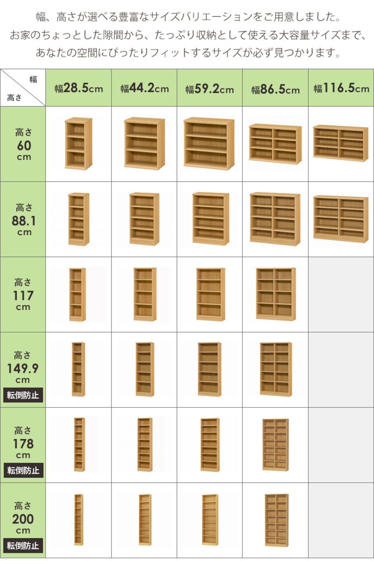 豊富なサイズ・カラーが選べるシンプルなデザインのオープンラック。