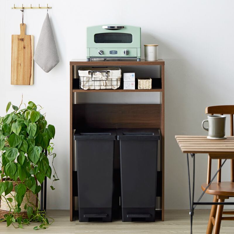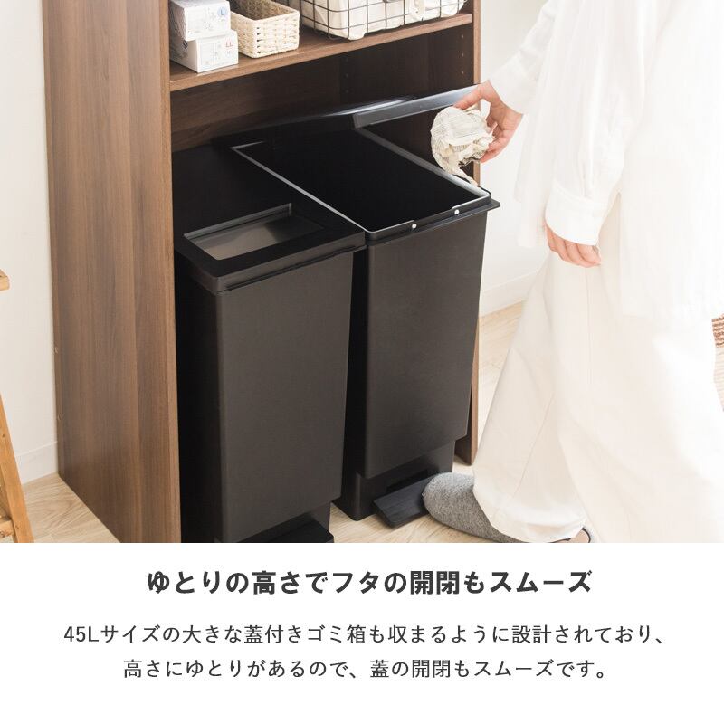 幅約60cmのスリムな設計で、45Lサイズのゴミ箱を最大で2個収納。