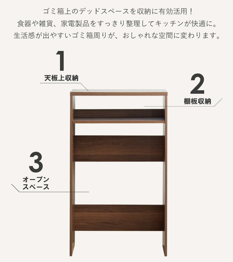 ゴミ箱上ラック スリムラック キッチンラック 一人暮らし収納 デッドスペース活用 ゴミ箱2個収納 幅60cmラック 45Lゴミ箱対応 キッチン棚