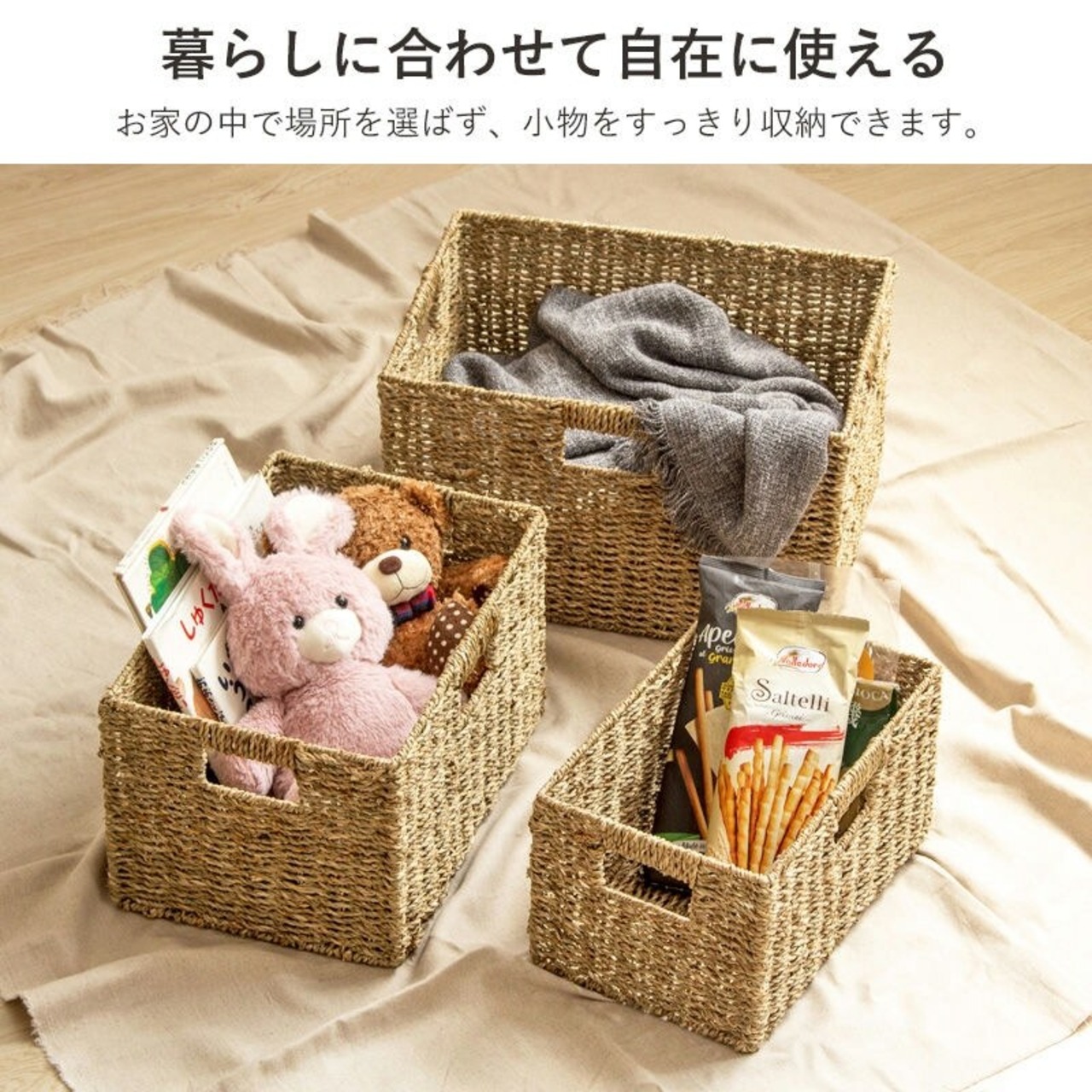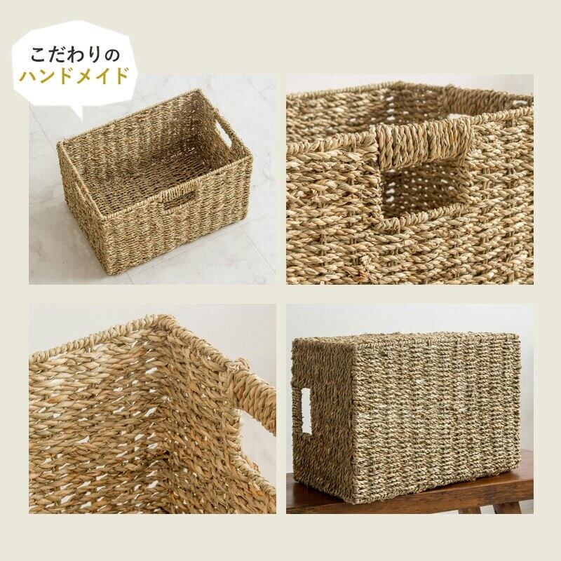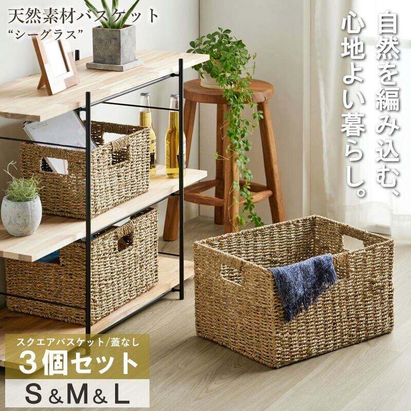 天然素材バスケット シーグラス スクエア3個セット(ふた無し) S/M/L IW-78 バスケット 収納 かご 籠 収納ボックス 小物収納 軽量 大容量