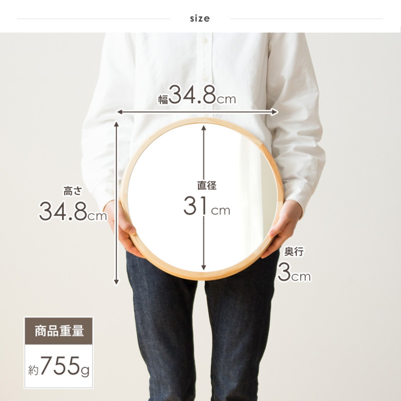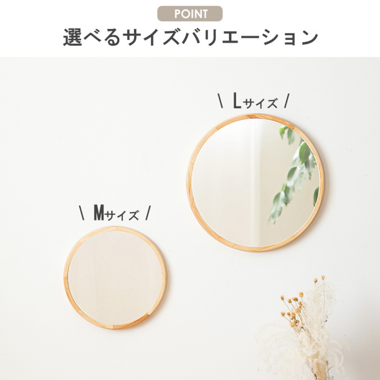 鏡 壁掛け ミラー 木製 ウォールミラー 壁掛けミラー 木枠ミラー 丸型 円形 丸ミラー 丸鏡 メイク鏡 化粧鏡 玄関 寝室 洗面