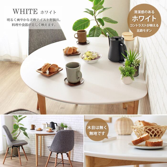 ダイニングテーブル 半円形 楕円 おしゃれ 北欧 白 幅110cm 木製 天然木 ダイニング用 テーブル 食卓 食卓テーブル サークル
