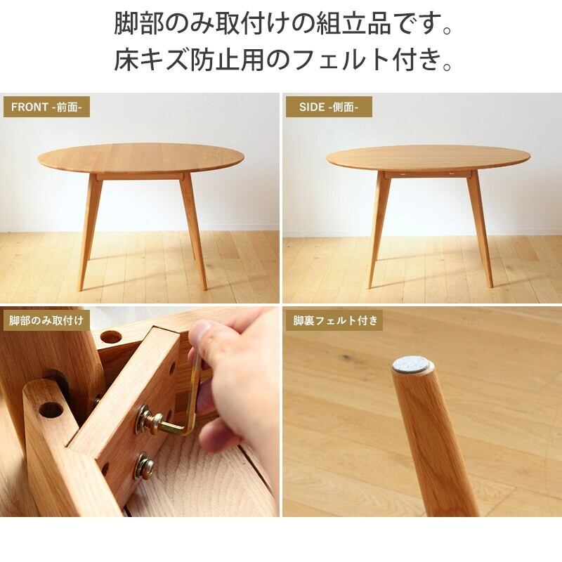 大川家具 ダイニングテーブル テーブル 円形 120cm 食卓 リビング オーク 無垢 シンプル木製 4人 食卓テーブル ナチュラル