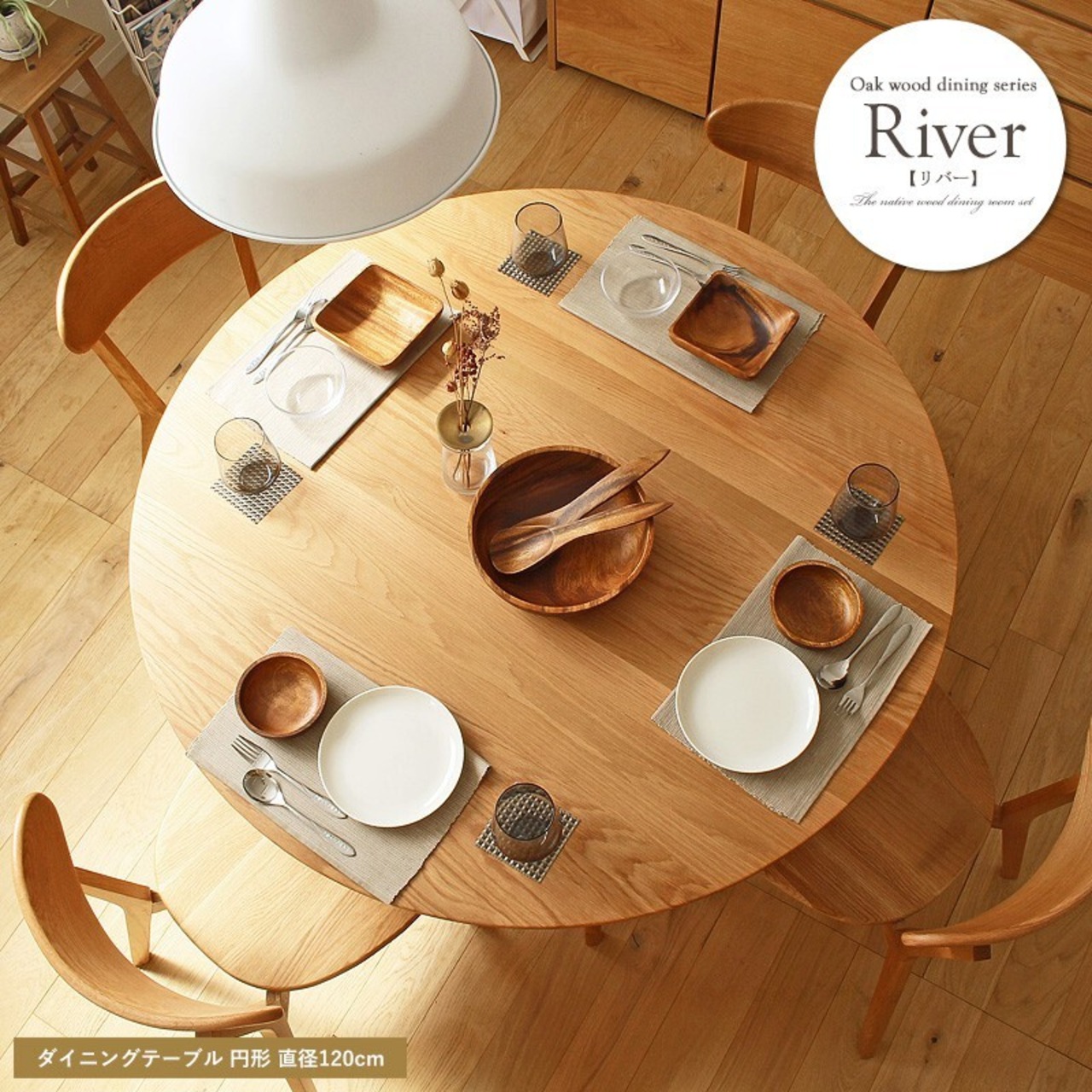 木のぬくもりが感じられる「リバー」ダイニング家具シリーズは、天然木オーク材を贅沢に使用したデザインが特徴です。