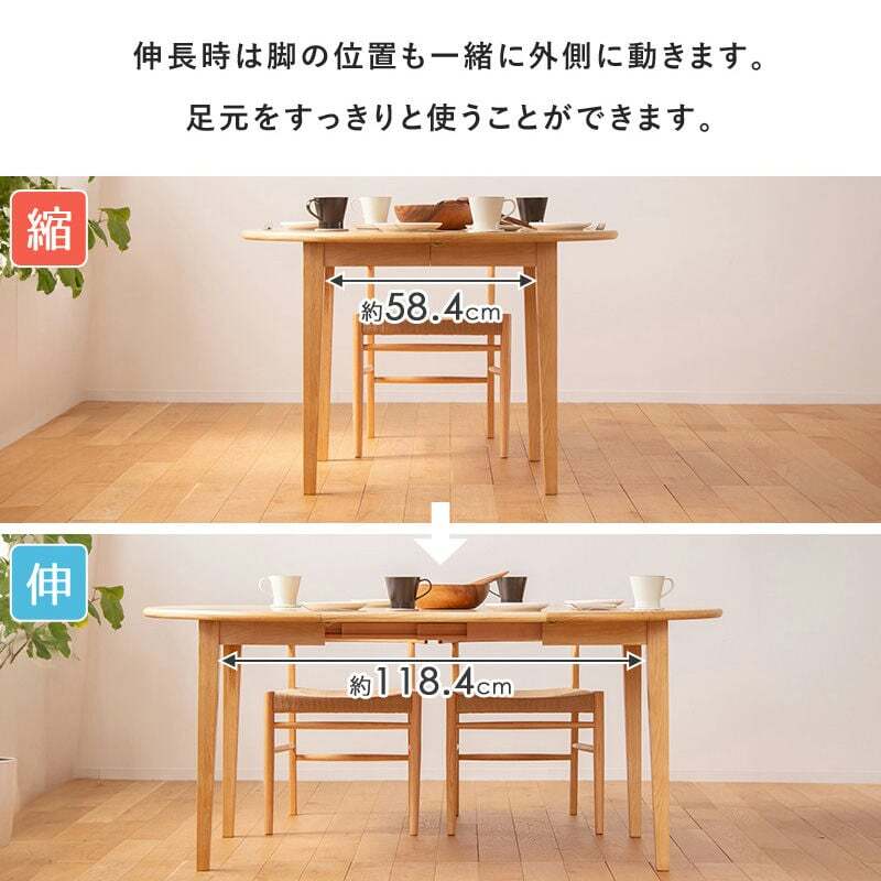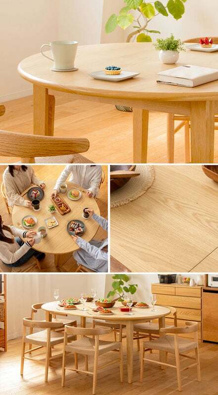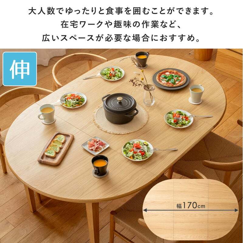 日常の食卓にも、来客時にも対応できる、実用性とデザイン性を兼ね備えた伸縮ダイニングテーブルです。