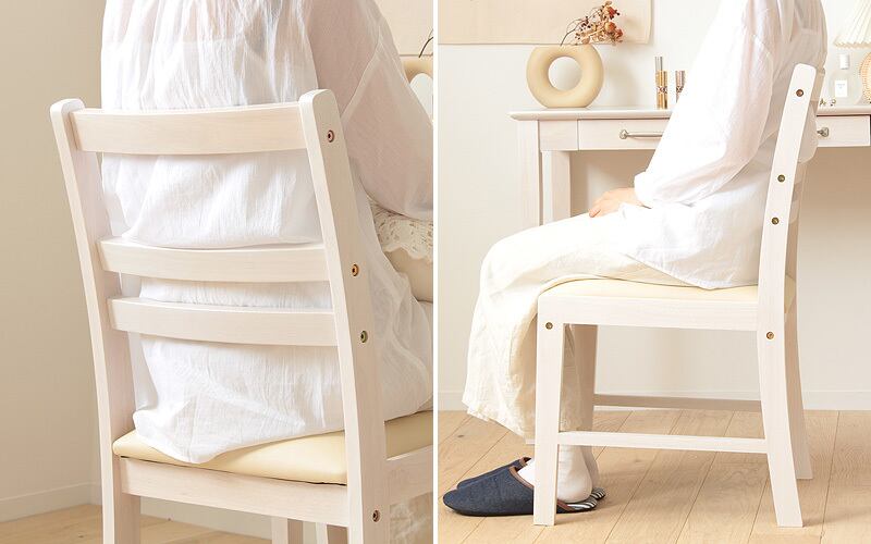 座り心地はもちろん、シンプルなデザインはインテリアとしても美しく、どこに置いても絵になる一脚です。フレンチカントリー風で、ほっこり可愛い雰囲気の椅子をお探しの方にぴったりです♪
