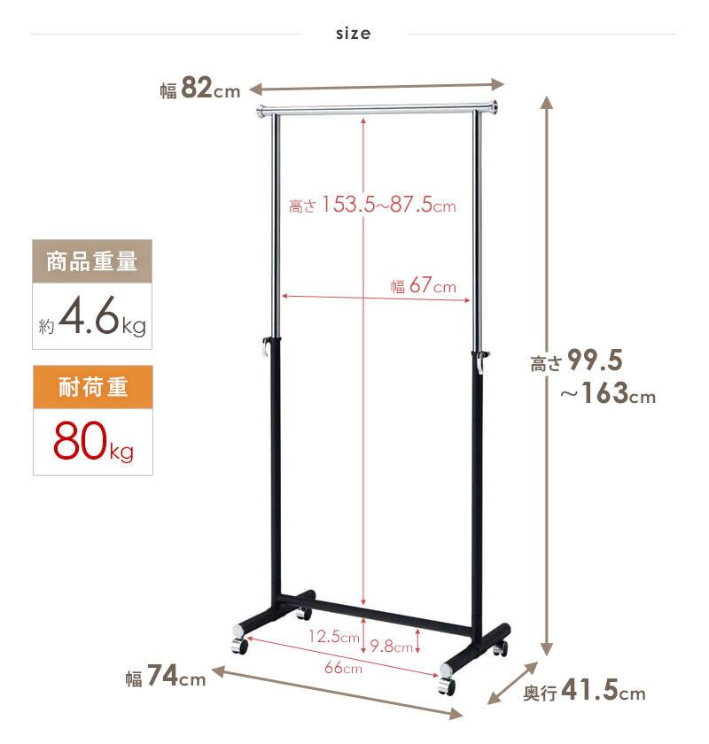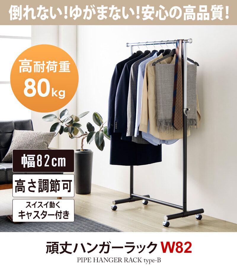 ハンガーラック スリム キャスター付き 頑丈 おしゃれ 省スペース 幅82 伸縮可能 シンプル 耐荷重80kg 衣類ハンガー 洋服掛け