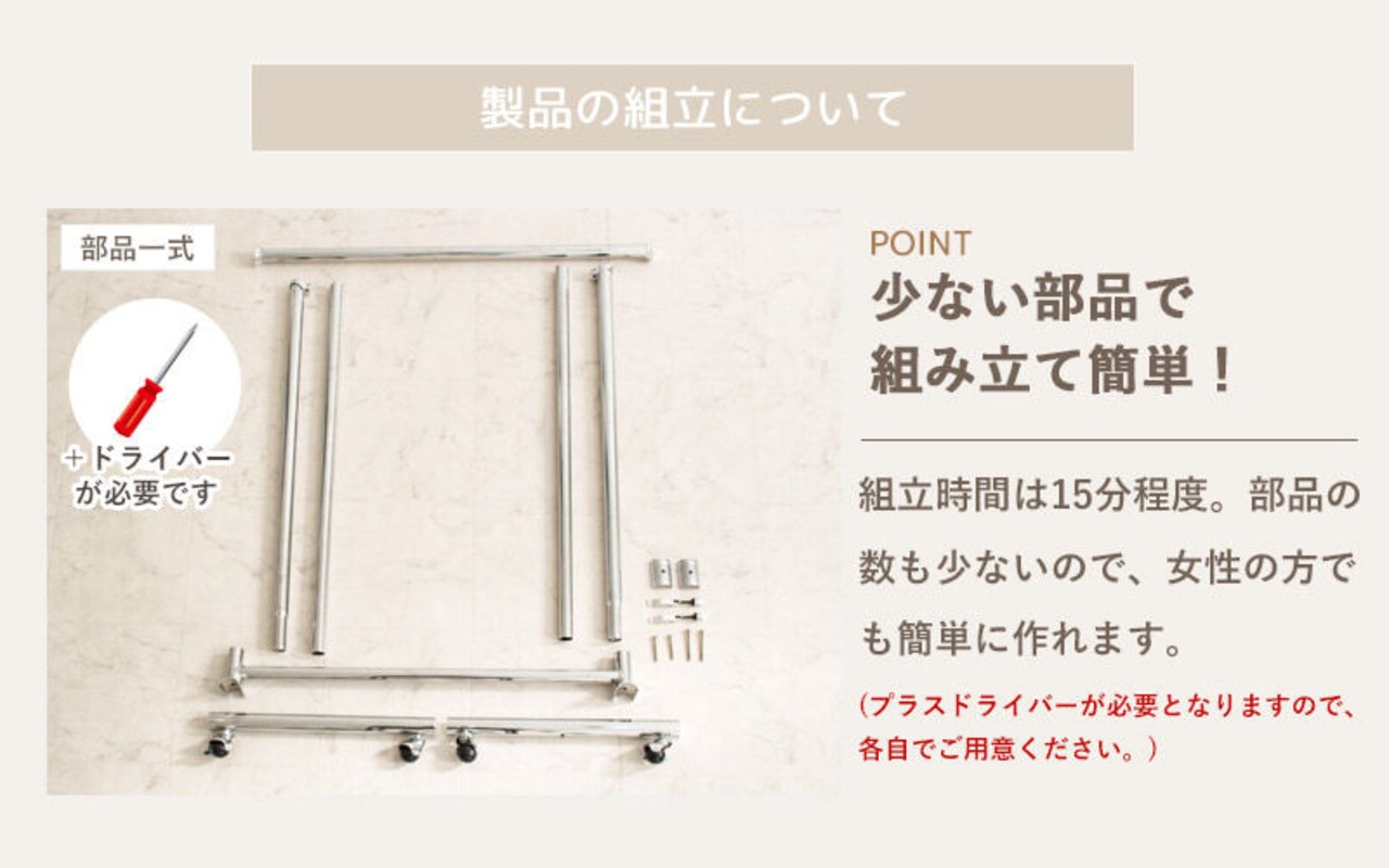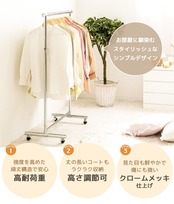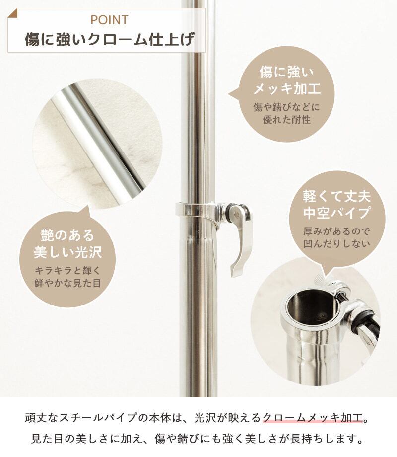 ご家庭のハンガーラックとしてはもちろん、業務用としてもお使いいただけるシンプルで高品質なデザインです。