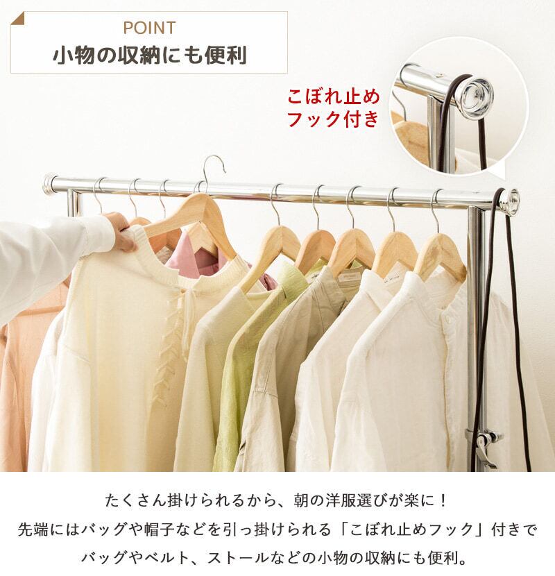 シャツやジャケットはもちろん、冬用のコートやダウンジャケットもたっぷり掛けられるパワフルな収納力を誇ります。