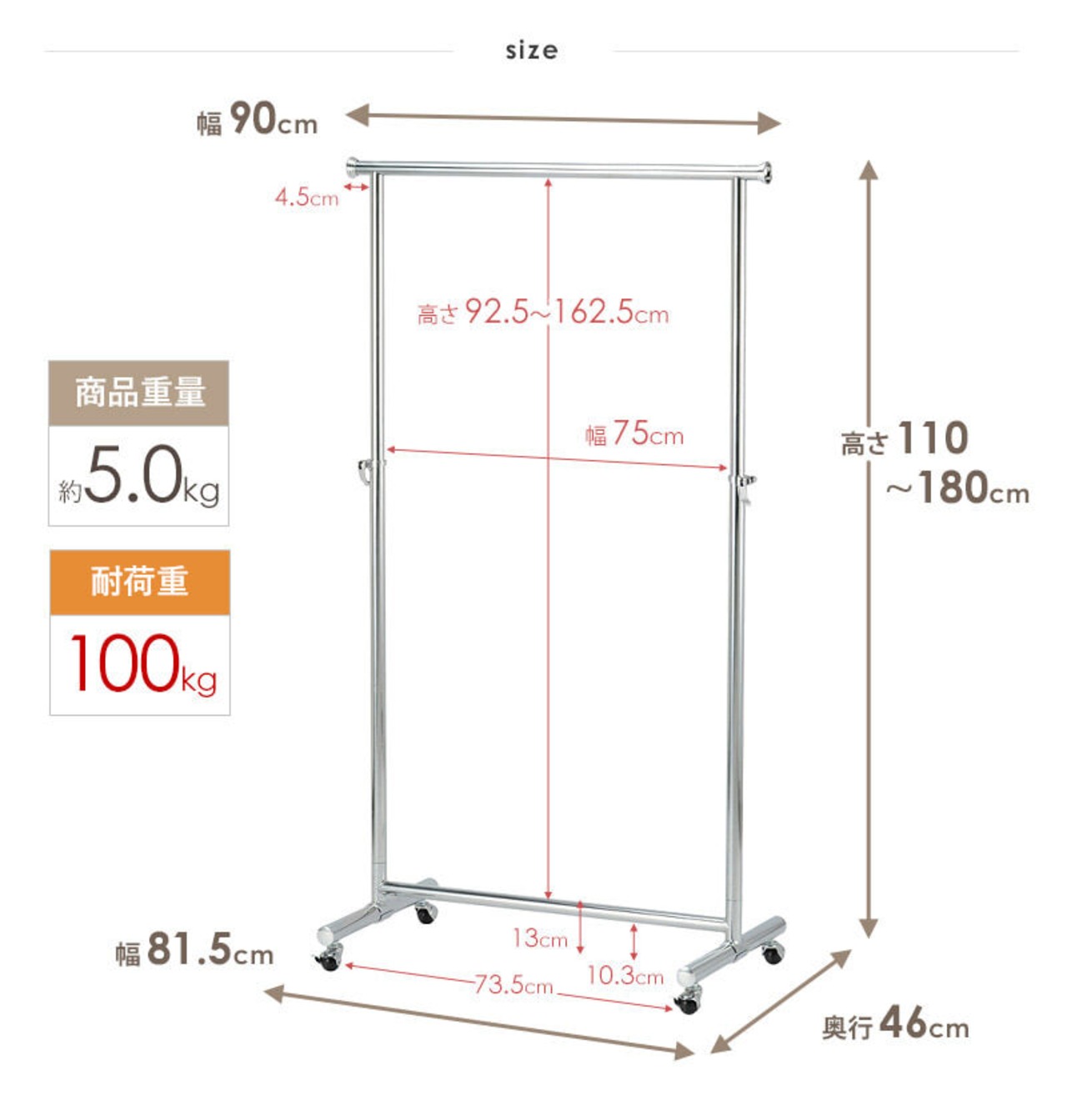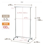サイズ 本体:幅90×奥行46×高さ110-180cm