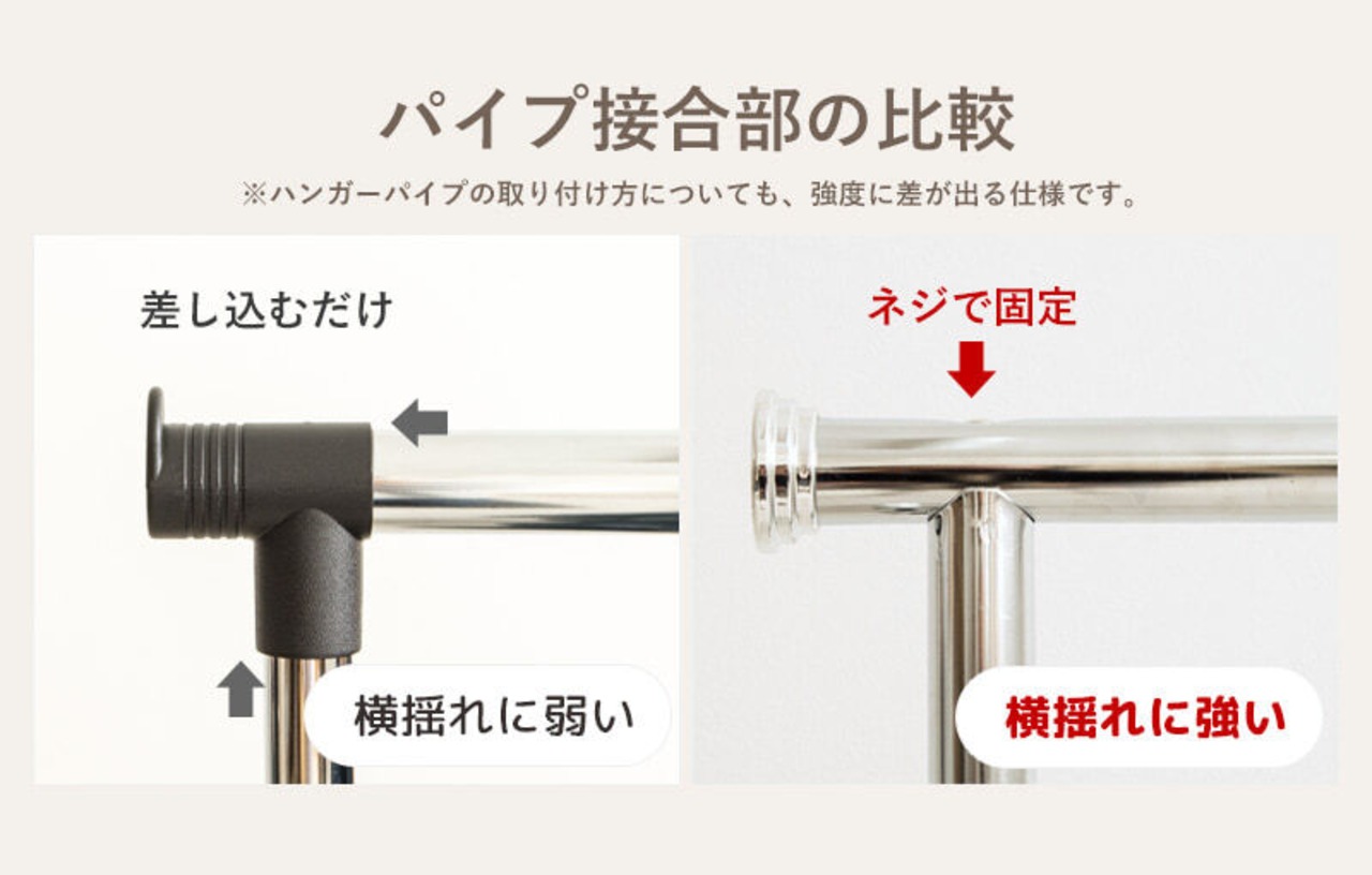 強度の高い構造と頑丈なスチールパイプで、耐荷重100kgを実現したパイプハンガー。