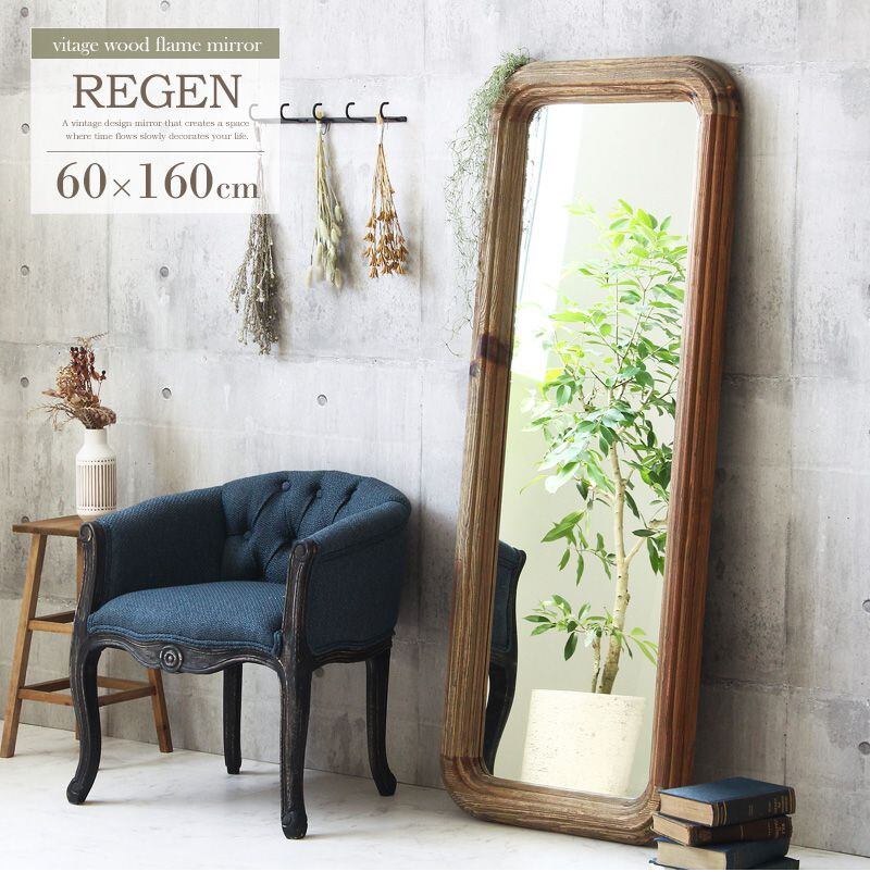 全身鏡 無垢 姿見鏡 大きめ おしゃれ 全身ミラー 天然木 姿見 大判 スタンドミラー 全身 60×160cm 立て掛け 鏡 ウッドフレーム