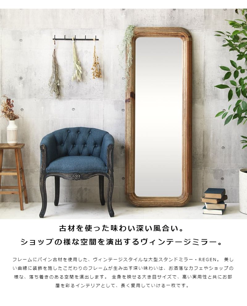 古材を使用した味わい深い風合いが魅力のヴィンテージミラー。