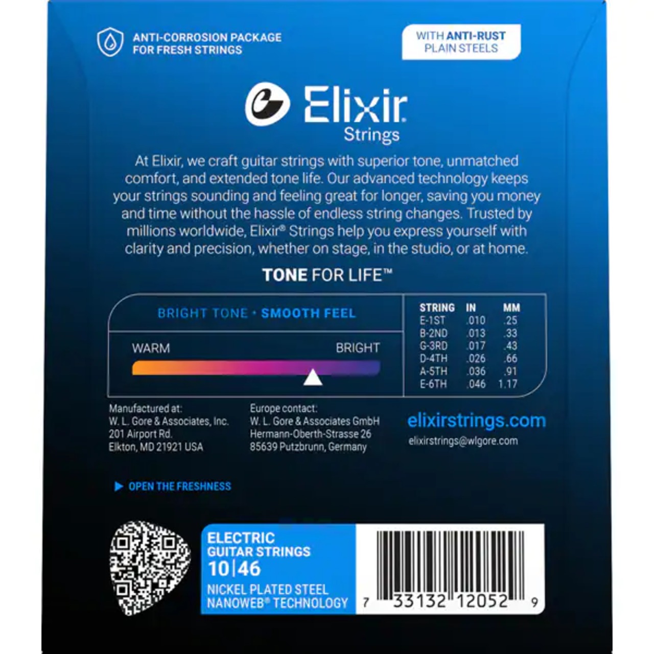 エレキギター弦 Elixir エレキ ギター弦 12052 NANOWEB LIGHT 10-46 正規品 コーティング弦 ハイクオリティサウンド 長持ち