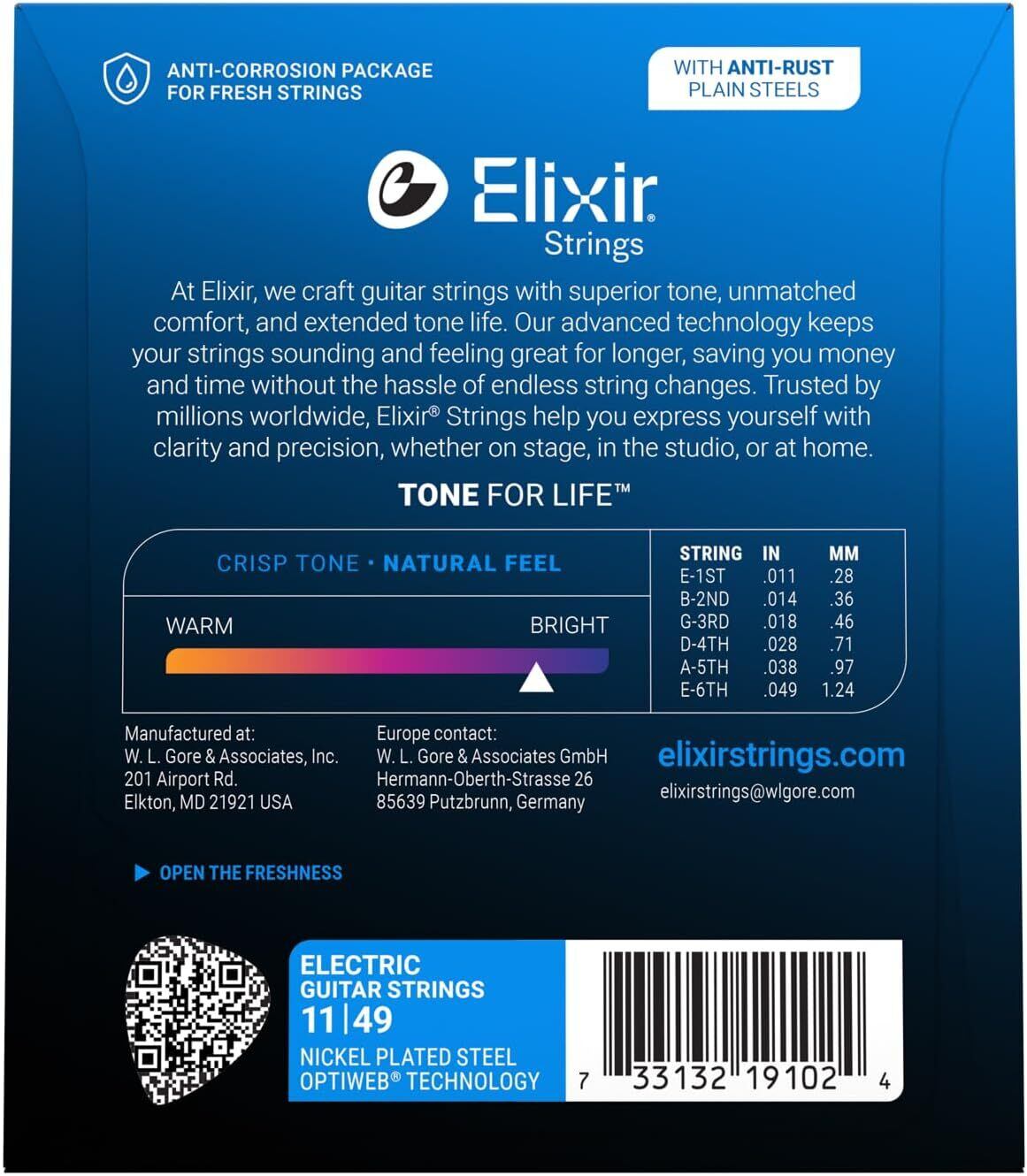 エレキギター弦 Elixir エレキ ギター弦 19102 OPTIWEB MEDIUM 11-49 正規品 コーティング弦 ハイクオリティサウンド