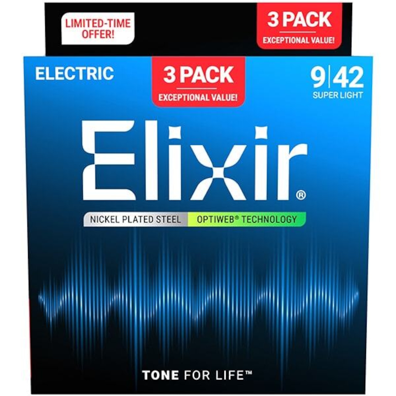 数量限定3セット 特別プロモーションパック Elixir エリクサー エレキギター弦 16571 (19002) OPTIWEB Super Light 09-42 国内正規品