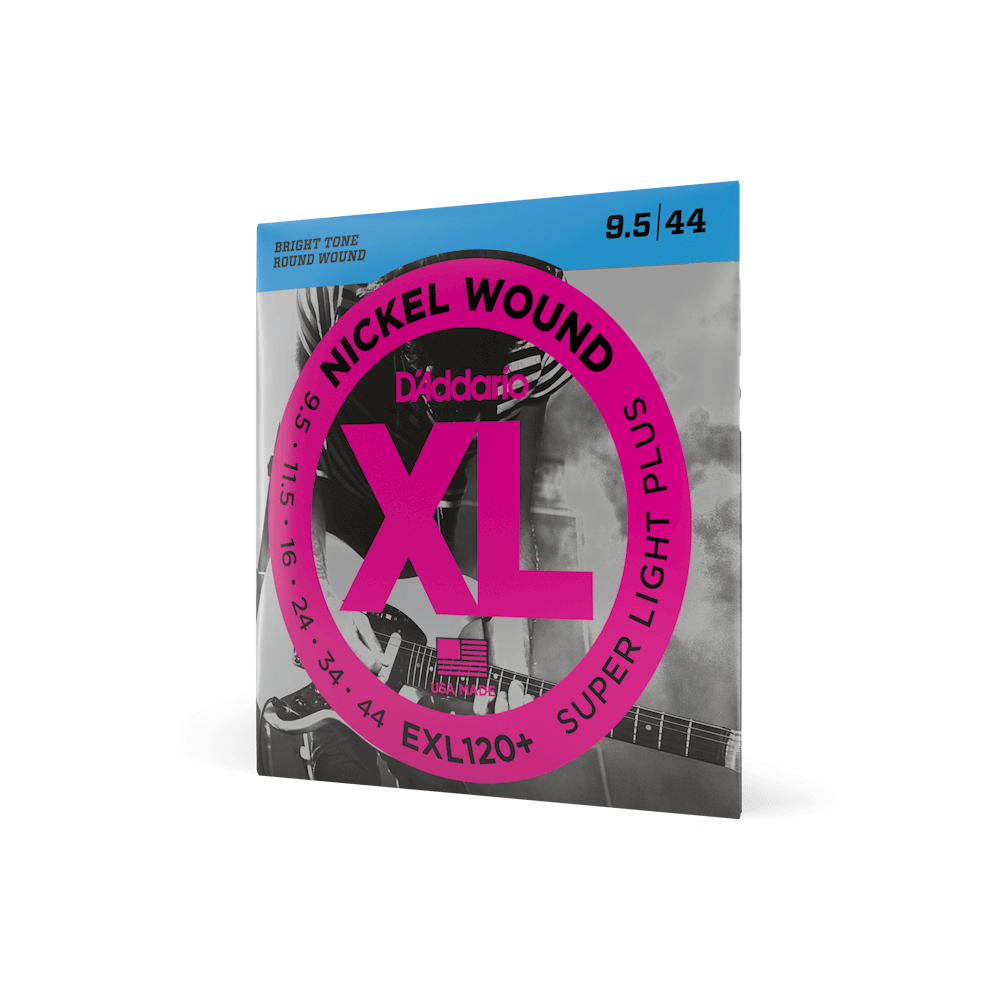 9.5-44 Super Light Plusは、9と10の中間点であり、さまざまなスケール長のギター間の張力のバランスをとるのに適しています。