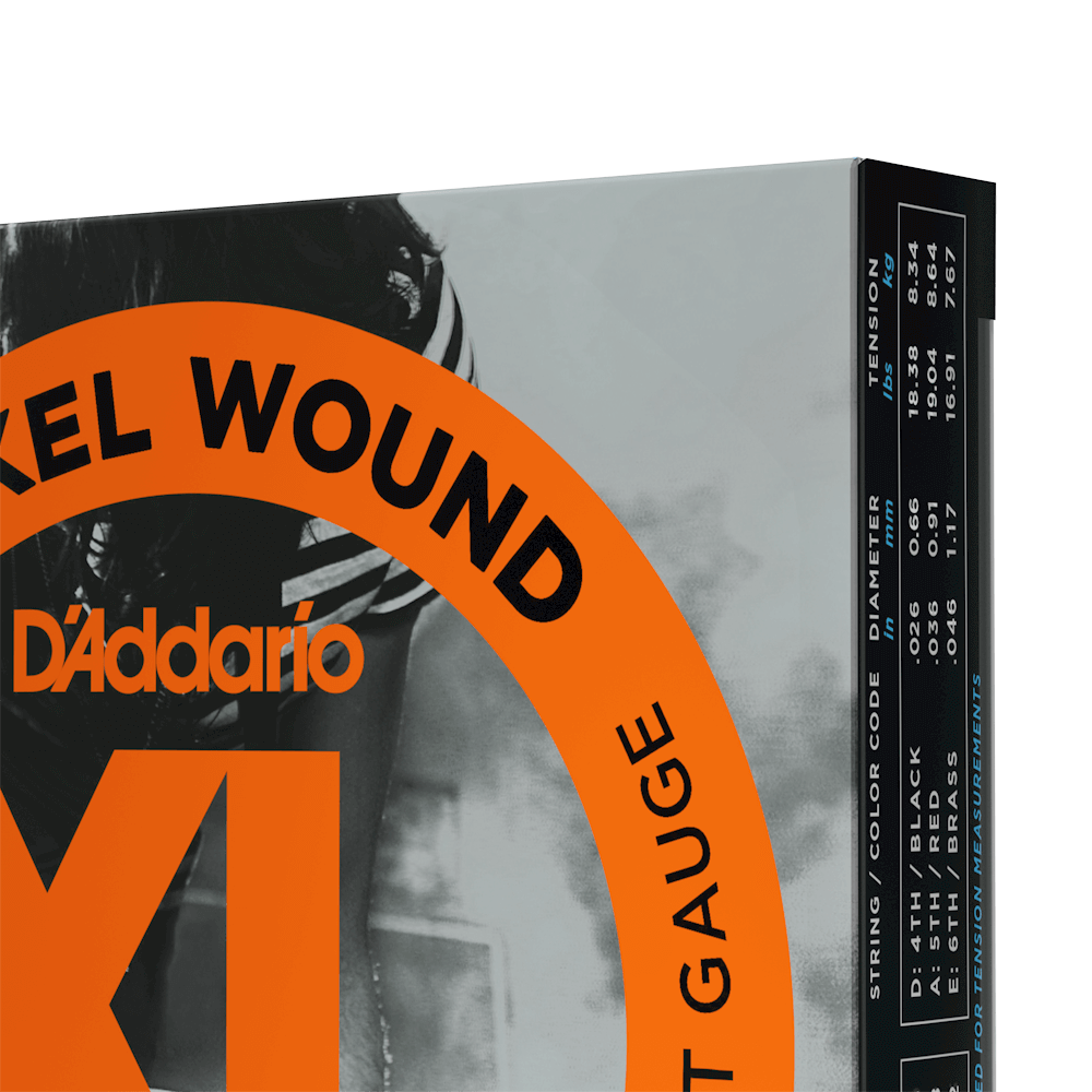 高炭素鋼コアとニッケルメッキスチールラップワイヤーで作られた XL ニッケル弦は、明るく多彩な音色を持ち、幅広い音楽に最適です。