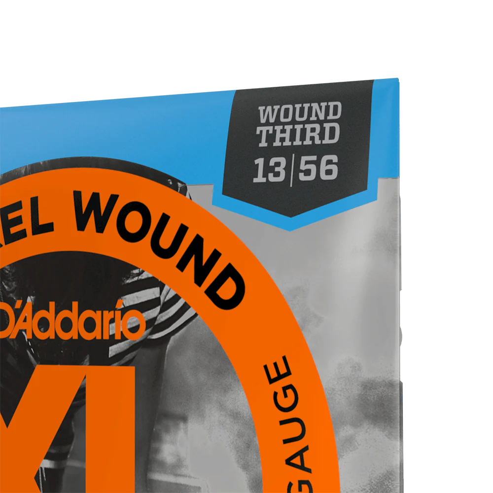 この13-56ジャズミディアムセットは、3弦(G弦)が巻弦になっており、ドロップチューニングに適した高いテンションを提供するとともに、伝統的なジャズセットアップにも対応します。