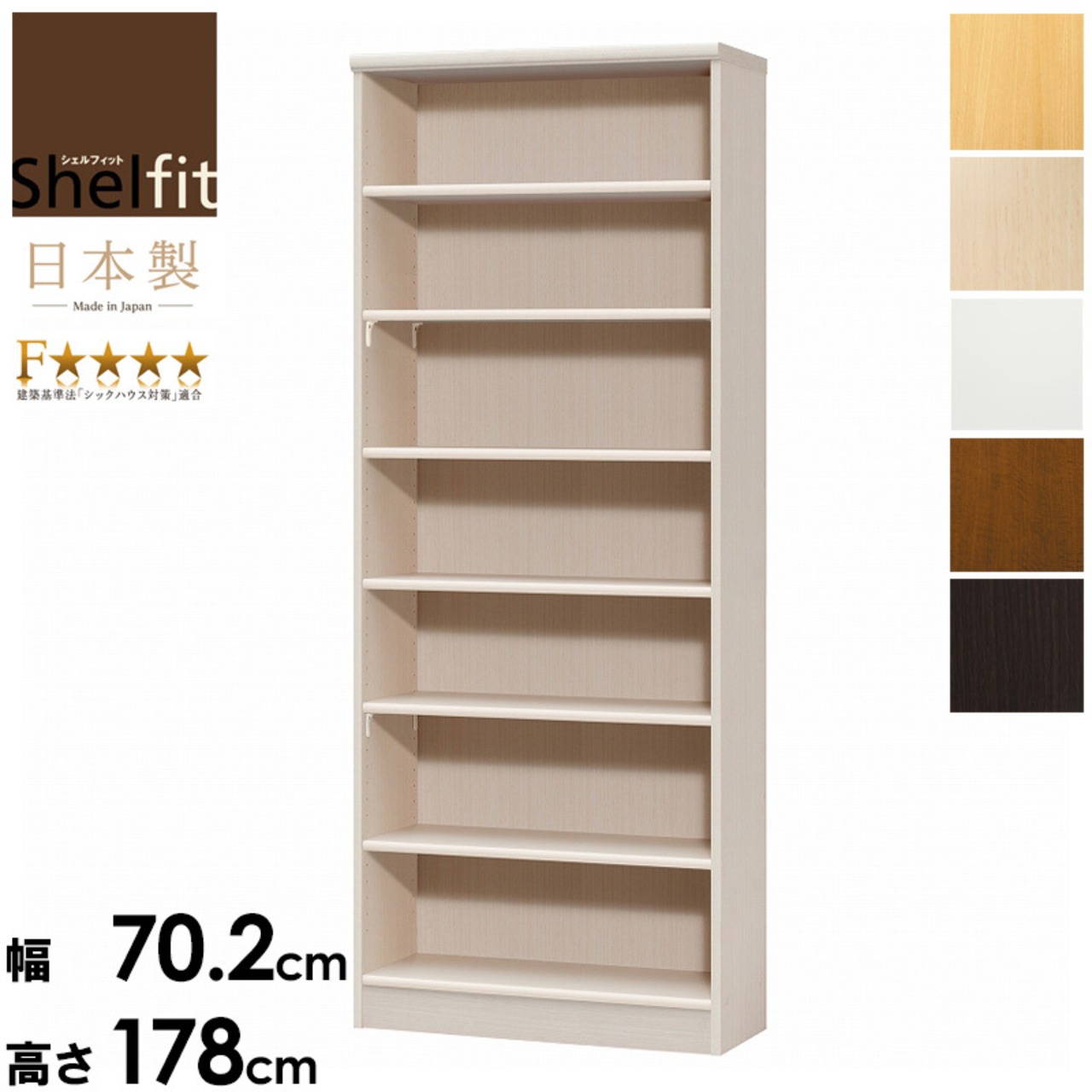 エースラック 幅70 高さ180 本棚 収納ラック 書棚 薄型ラック 壁面収納 木製家具 日本製家具 スリム収納 おしゃれ収納 可動棚 組立簡単