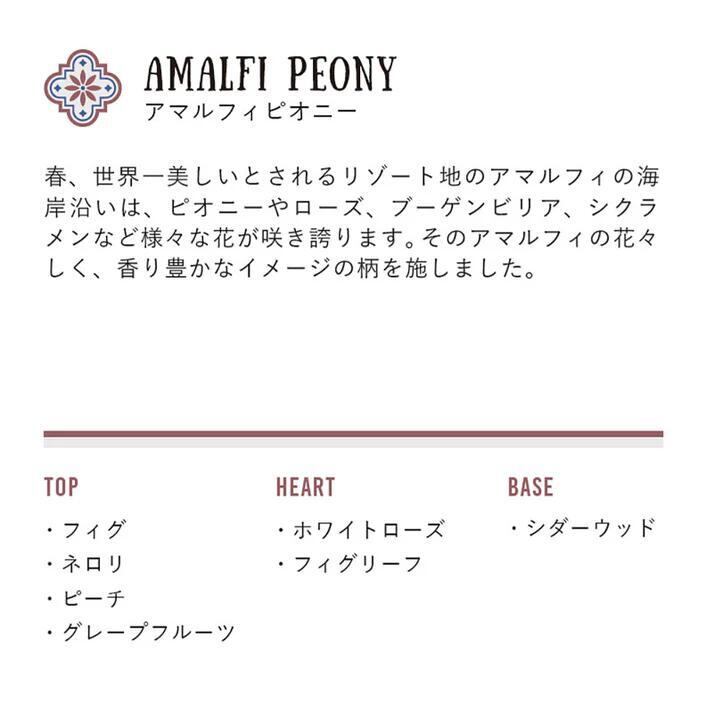 イタリア各地の特産を表現した柄や香りを施し、爽やかで優雅なアロマをご堪能ください。